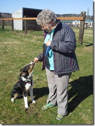 Jeremiah did a short training lesson for dinner consisting on sits, downs, stands and backing up and Hops did a good job for him.